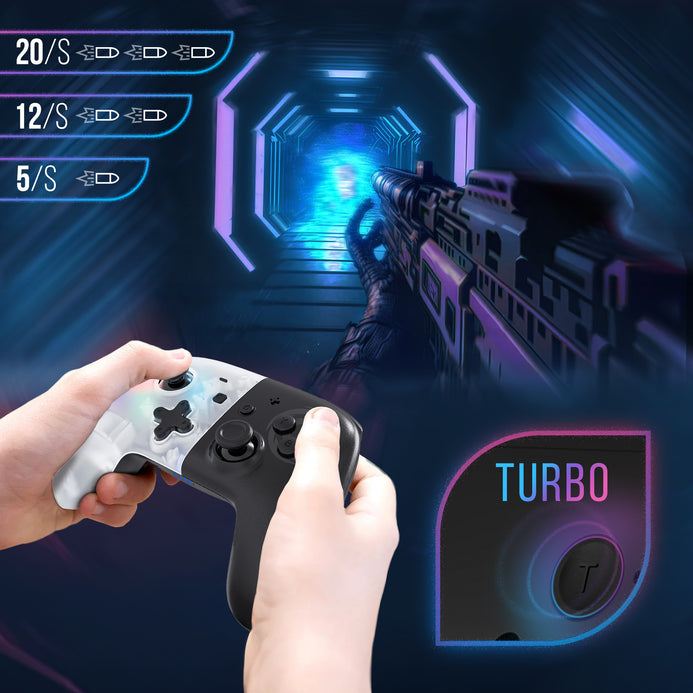 Διαθέτει γυροσκόπιο, ιδανικό για παιχνίδια αυτοκινήτου αλλά και λειτουργία Turbo, ιδανικό για παιχνίδια σκοποβολής.