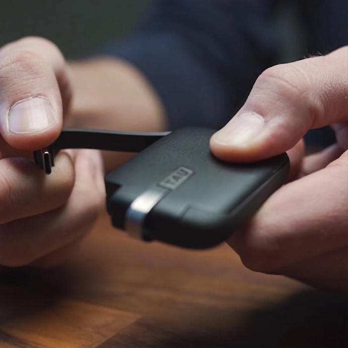 The TAU®’s magnetic charging dock fixes onto a counter or wall quickly, making it effortless to recharge your power bank.